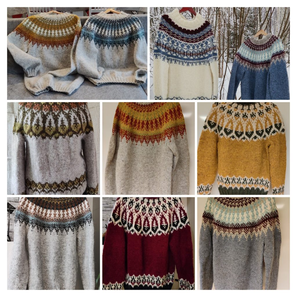 Täältä löydät kuvia myös jo tilatuista ja myydyistä neuleista. Myynnissä olevat tuotteet löydät verkkokaupan puolelta.