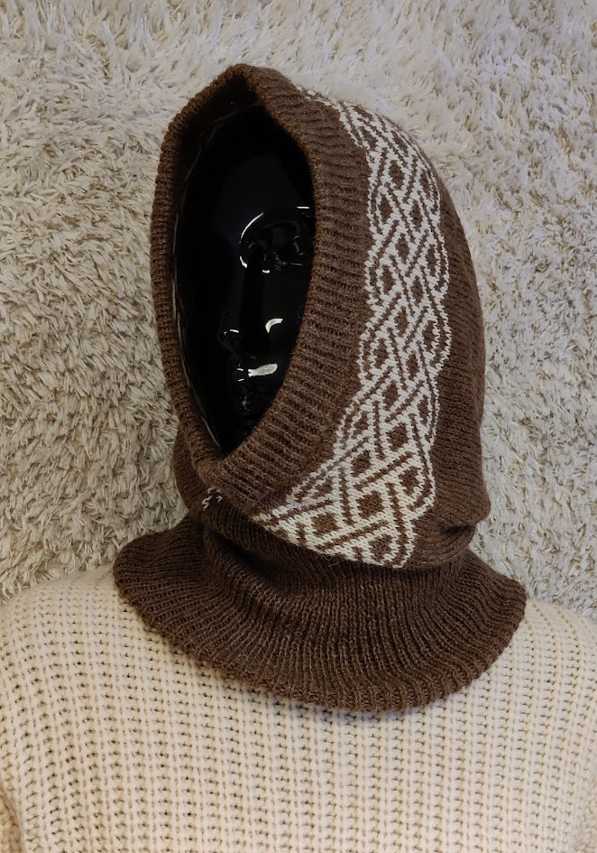 ”Köynnös” ruskea huppukauluri resorilla, 100% perulaista alpakanvillaa, yksi koko. Alpakanvilla ei kutita ja sopii näin myös herkkäihoiselle.