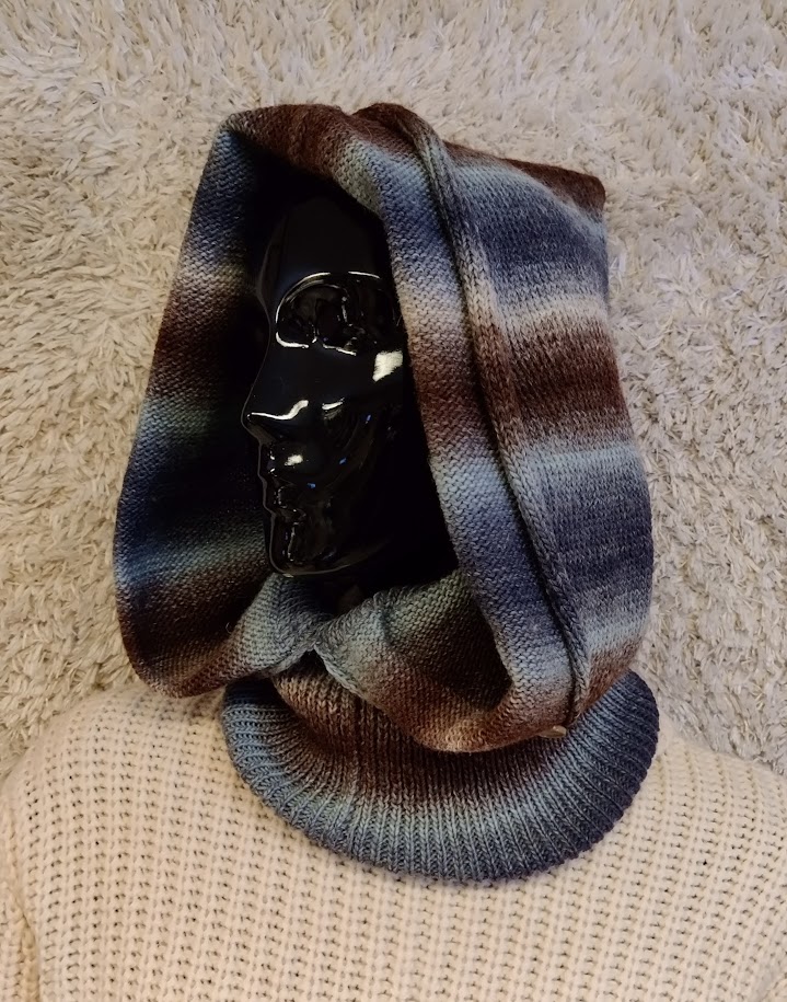 ”Sinitaivas” huppukauluri ilman resoria, Novitan sekoitelankaa; 75%villaa 25% polyamidia, yksi koko.