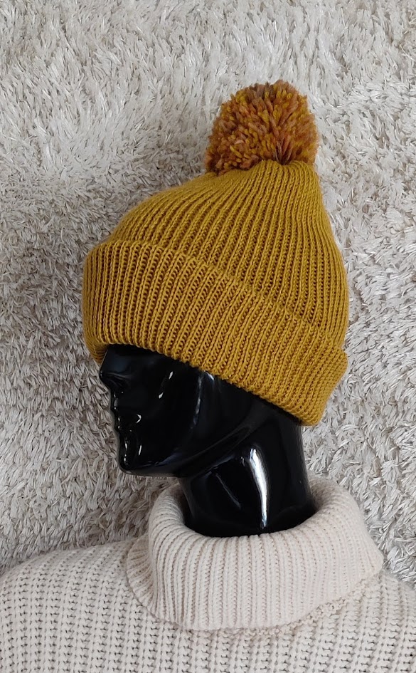 Okran värinen Tupsu-pipo. Pitkä pipo, jossa jättitupsu. Pipon reunan voit kääntää jopa 4-kertaiseksi .